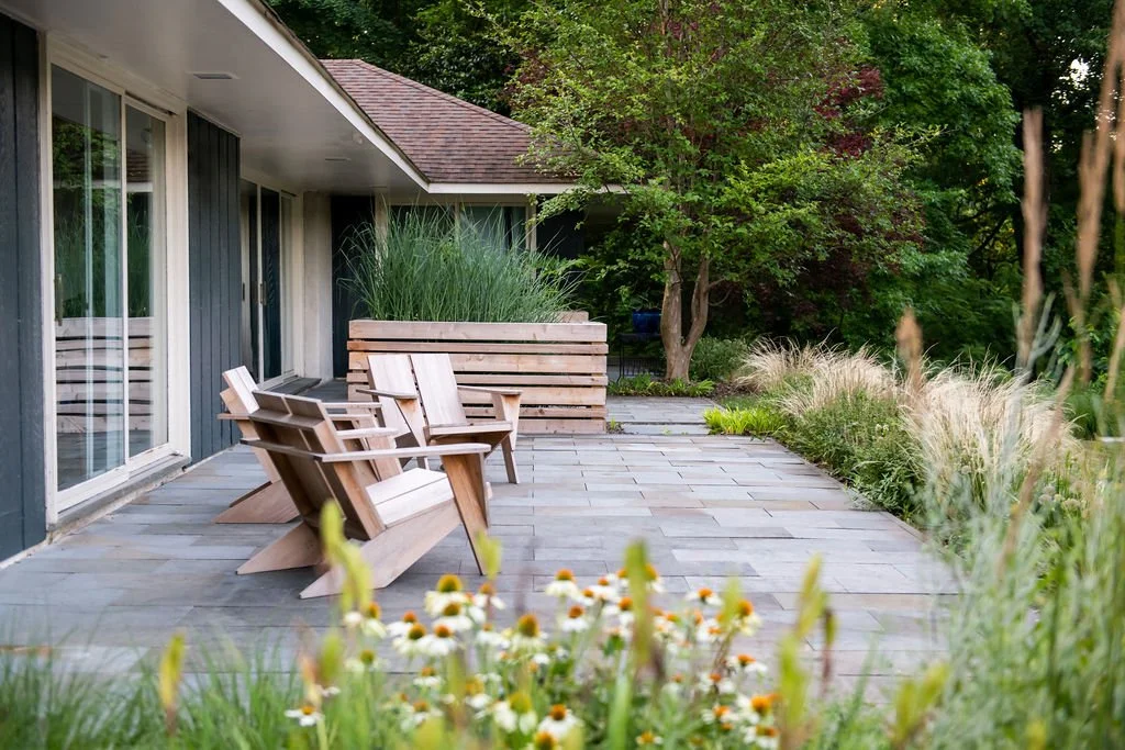 Foxhill at Saint George’s Road in the North Roland Park neighborhood of Baltimore features a beautiful prairie-style home that was once part of a larger estate with a historic stone-walled garden. When the current owners, including a container ship pilot, purchased the property in the late 2010s, they were eager to create a cohesive outdoor space that connected with the architecture while addressing the challenges of steep grades. We designed terraced walls that evoke the bow and stern of a ship, improving site access and parking along the way. The landscape is divided into five distinct zones, each offering unique experiences, from wildflower prairies to woodland edges, and even productive gardens filled with fruit trees and vegetables. The final result blends natural beauty with structured design, creating a peaceful retreat that invites exploration and enjoyment right in the heart of the city.